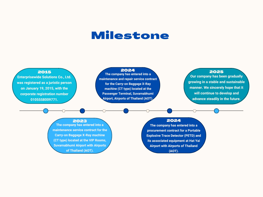 Our X-ray products and maintenance services are currently used by the Suvarnabhumi Airport, Don Mueang International Airport, Phuket International Airport, Chiang Mai International Airport, Mae Fah Luang – Chiang Rai International Airport, and Hat Yai International Airport. We are extending our business relationships to the Department of Defense and the Armed Forces, sea ports and other military facilities.